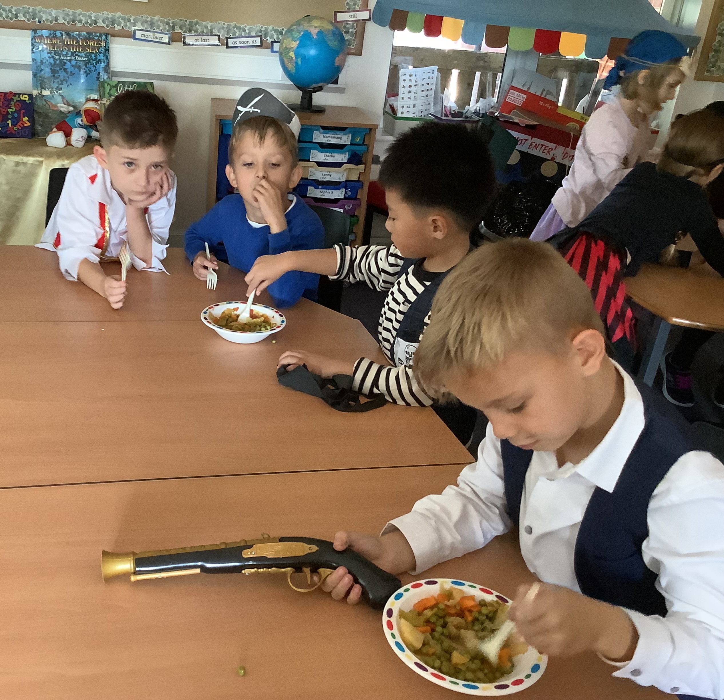 Week 6 brought with it a special day on Thursday where children came dressed as pirates - Atlanta-Rose even wore a pirate ship! Thank you to parents for your support with this. Children took part in a variety of activities during the day including making and eating pirate stew (mixed reviews on this!), creating puppet pirates, a boat and a parrot to act out a story, and a pirate themed scavenger hunt in the afternoon.