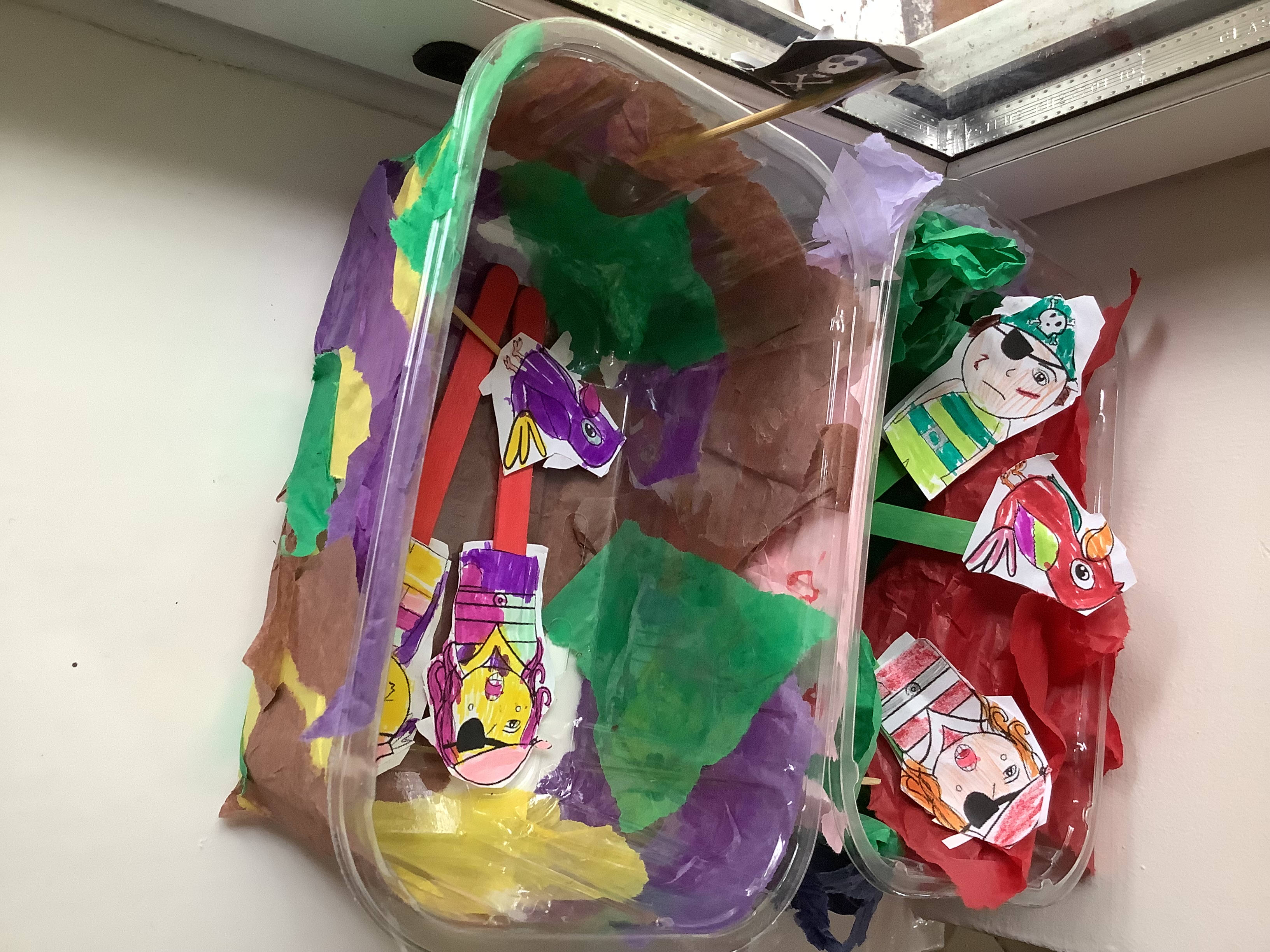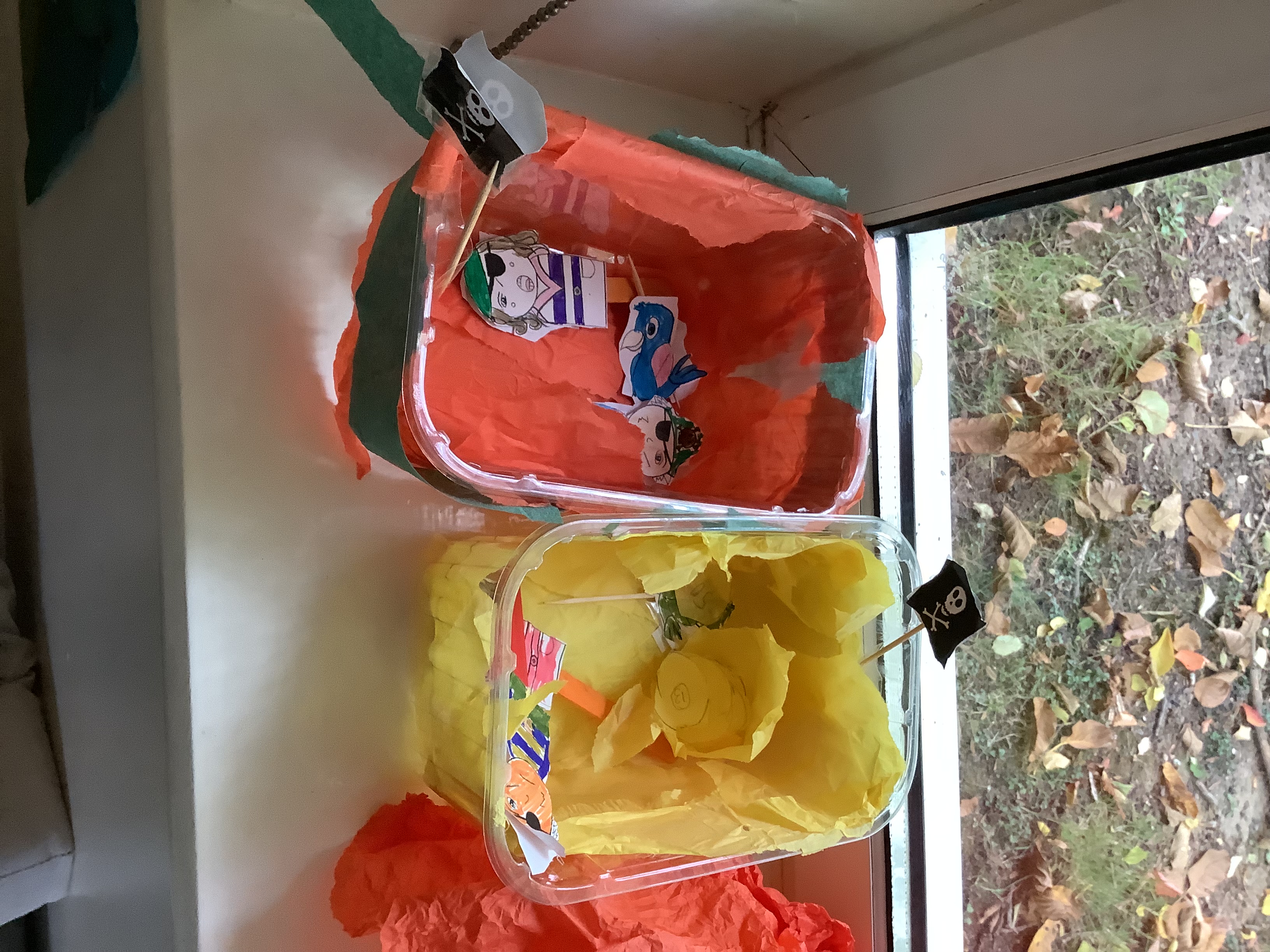 In English, children have finished their versions of The Pirate Cruncher.